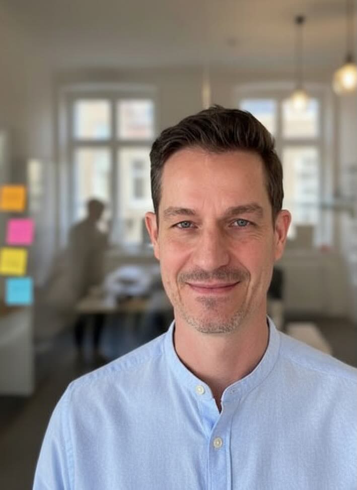Berater, Facilitator und Strategischer Sparringspartner. Er bringt umfassende Erfahrung aus Konzern- und Start-up-Welt mit – und liebt es, Brücken zu bauen: zwischen Menschen, Themen und Disziplinen.